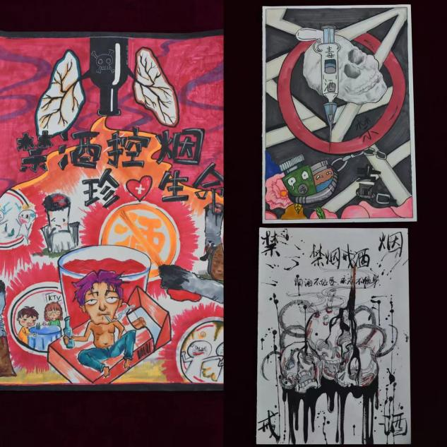 为树立和展现学校师生良好的精神面貌,养成文明的生活习惯,创造文明、洁净、优美的校园环境。学校团委组织开展了以“禁酒控烟”为主题的书画比赛。
