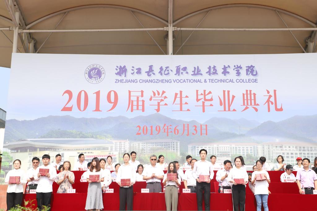 毕业典礼在庄严的国歌声中拉开帷幕。副院长杜宝山宣读了国家奖学金获得者、省级、院级优秀毕业生表彰的《决定》,许群伊等4名学生荣获2017-2018学年国家奖学金,郑诗雨等111名学生被授予“浙江省普通高等学校优秀毕业生”称号,陈琦琦等301名学生被授予“浙江长征职业技术学院校优秀毕业生”称号。杜院长希望受表彰的毕业生珍惜荣誉,再接再厉,积极投身创新创业大潮,在新的岗位上建功立业,为母校增光添彩,努力在实现中国梦的伟大实践中创造自己的精彩人生,也希望全校同学以先进典型为榜样,弘扬“自强不息,厚德载物”的校训精神,刻苦学习,奋发进取,努力取得优异成绩。随后,出席典礼的学校领导向受表彰同学颁发了荣誉证书。