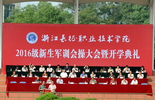 金秋九月,秋风送爽,浙江长征职业技术学院的田径运动场上,全体士兵,列队整齐,戎装待发。2016级新生军训会操暨开学典礼将在这里举行,会议由党委副书记、副院长王其军主持,中层以上干部参加。