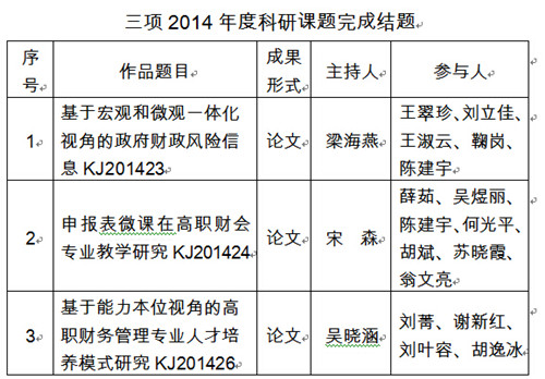在7月25在安徽合肥召开的中国商业会计学会第十一届高职教育改革研讨会上,我院会计系和财管系的老师们又取得了好成绩:共有四项课题立项、获得优秀论文二等奖三等奖各一篇、课题完成结题的共三项。(会计研究所供稿)