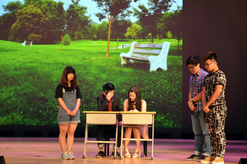 5月23日,小和山高教园区第二届心理剧比赛在浙江外国语学院大学生活动中心热烈举行。参加比赛的节目由高教园区四所高校选送的节目组成,我院选送了语言系同学们演绎的心理剧《爱的沟通》参加了此次比赛。该剧通过同学们生动、活泼的演出,表达出沟通是解决父母和孩子之间、恋人之间、朋友之间误会的关键。