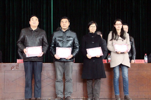 大会在庄严的国歌声中拉开了序幕,首先系党总支副书记陆栋煜老师宣读了计信系2013年度表彰文件,表彰过去一年里所涌现出的先进个人和集体,表彰的奖项分别有:教职工2013年度先进工作者、学生技能竞赛优秀指导教师、校企合作实践基地建设先进个人、教学督导先进工作者、系级创优学风先进班级、道德模范先进班级、优秀学生奖学金,优秀助理班主任、内务整理及文明寝室、学习标兵寝室等。参会领导为获奖代表们颁奖,获奖代表们在师生们热烈的掌声中领取了荣誉证书及奖状。会上,全体师生们还观看了过去一年里计信系记录各项集体及学生活动的视频短片,回顾了过去一年里计信系在“三风建设”、校企合作工学结合、党建思政学生管理工作、寝室文明创建工作以及学生第二课堂活动等各项工作活动中所取得的优异成绩。最后,由系主任盛法生教授致闭幕词,他强调,全系一定要牢固树立发展意识,以教风促学风,并对在场全系师生提出了殷切的希望。