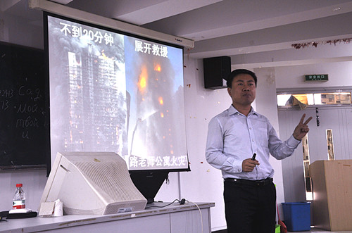2011年10月16日,我院举办了冬季消防安全知识培训,保卫处组织全体思政人员、兼职班主任、大一新生各班负责人、大二各班班长等200余人,在1218教室进行了消防安全知识培训。