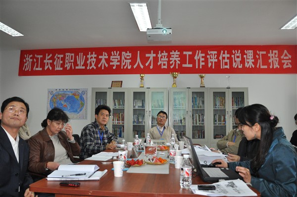 2010年4月26日下午四点,高等职业院校人才培养工作评估专家组专家高创宽教授、王成方教授、汪继云教授以及北京市教委的观察员米兰、卢小平副教授等听取了贸易系说课汇报。