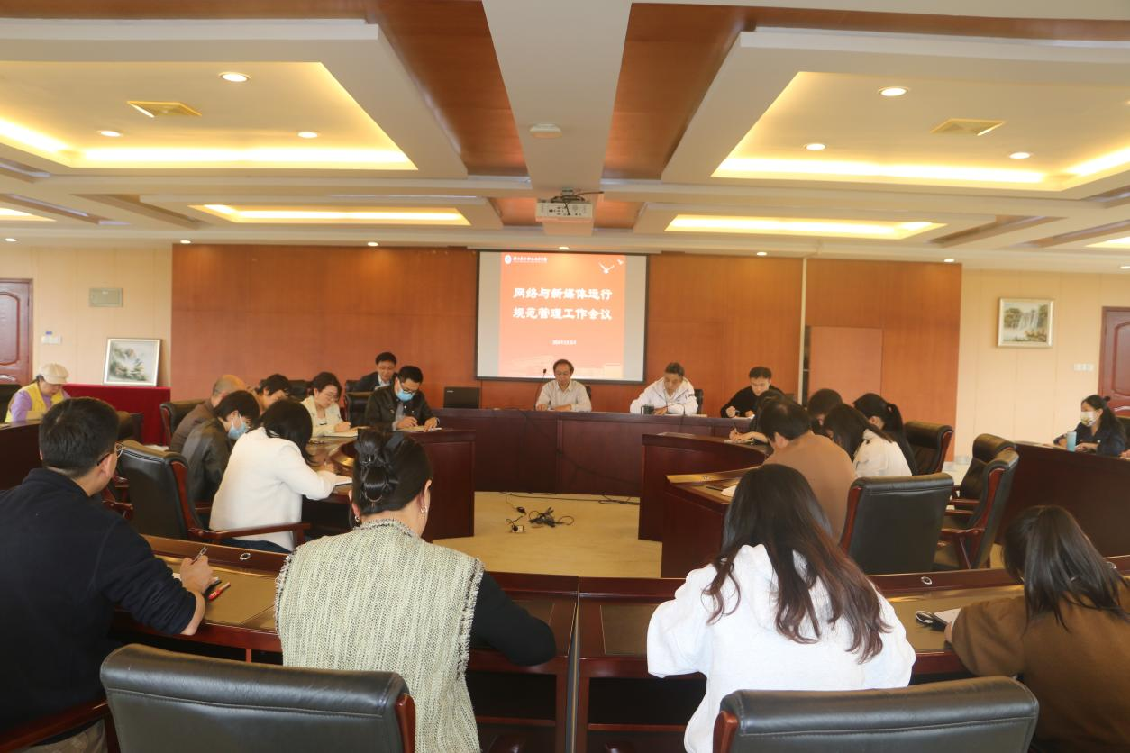 为深入学习贯彻习近平总书记关于加强高校思想政治工作的一系列重要讲话和指示批示精神,深入学习贯彻习近平总书记关于网络强国的重要思想,进一步做好学校网络与新媒体建设管理工作,整合校园媒体平台资源,更好地服务广大师生和校友,提升学校官方网站和新媒体平台的实效性和影响力,3月25日下午,学校在行政楼第一会议室召开网络与新媒体运行规范管理工作会议。学校党委书记、常务副校长王其军,党委副书记吴有恩,校长助理王德奎,全体中层干部,各学院、各部门通讯员等参加了会议。会议由王德奎主持。