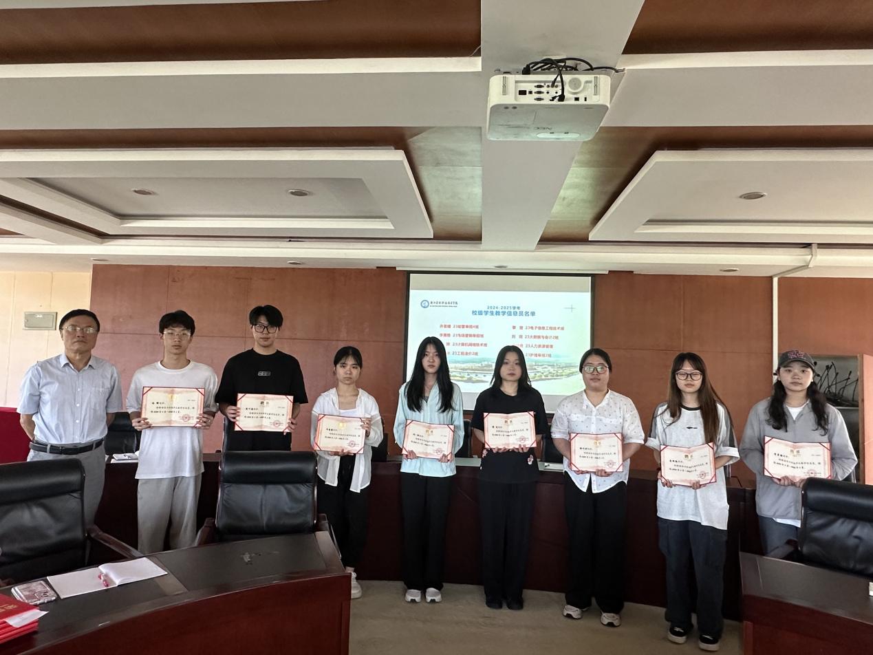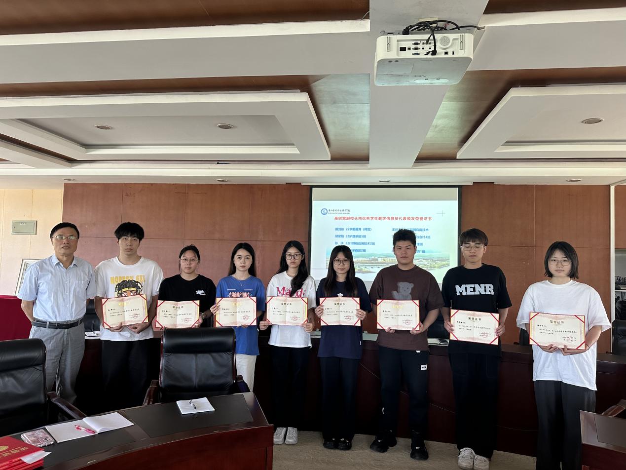 高创宽向优秀学生教学信息员代表颁发了荣誉证书,并代表学校对受表彰的学生教学信息员表示祝贺,对信息员一直以来认真履职表示感谢。希望大家把积累的工作经验传授给新任校级信息员,以确保教学信息工作能够顺利、平稳、持续开展,并在未来的学习、工作生活中,充分发挥将在担任信息员期间锤炼形成的交流沟通能力、信息处理能力,不断创造新的业绩。