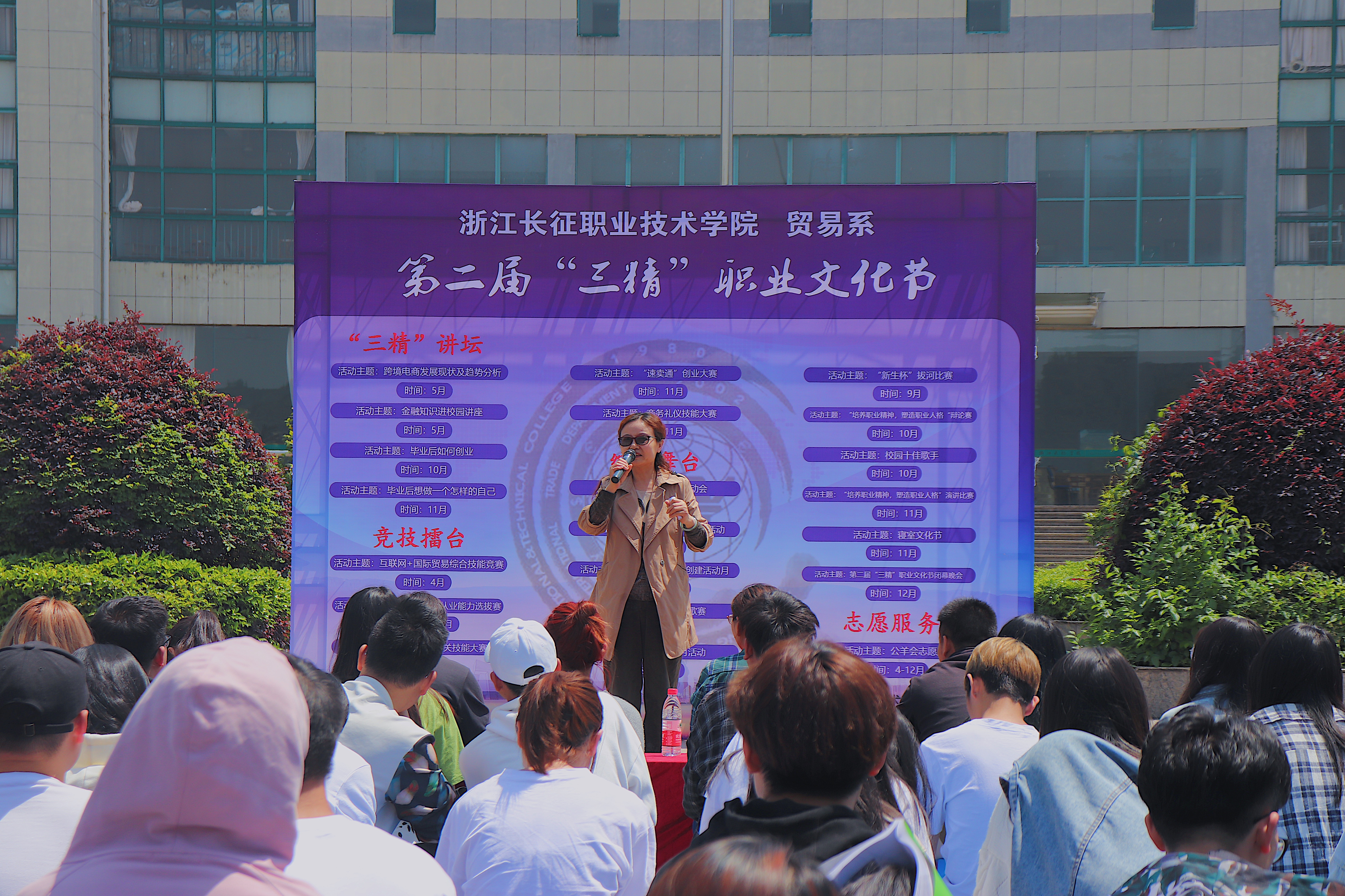 系主任张琼教授在讲话中强调:举办“三精”职业文化节旨在通过一系列的讲座和活动给同学们搭建一个职业素养的学习平台、职业精神的养成平台、职业才干的展示平台。重新和同学们重温了“三精”系训的内涵,号召同学们积极参与活动的同时也要将精细、精明、精进的实质精神落实到学习与生活中,让“三精”精神不再是简单的口号!让“三精”精神真正融入贸易学子的学习和生活中!