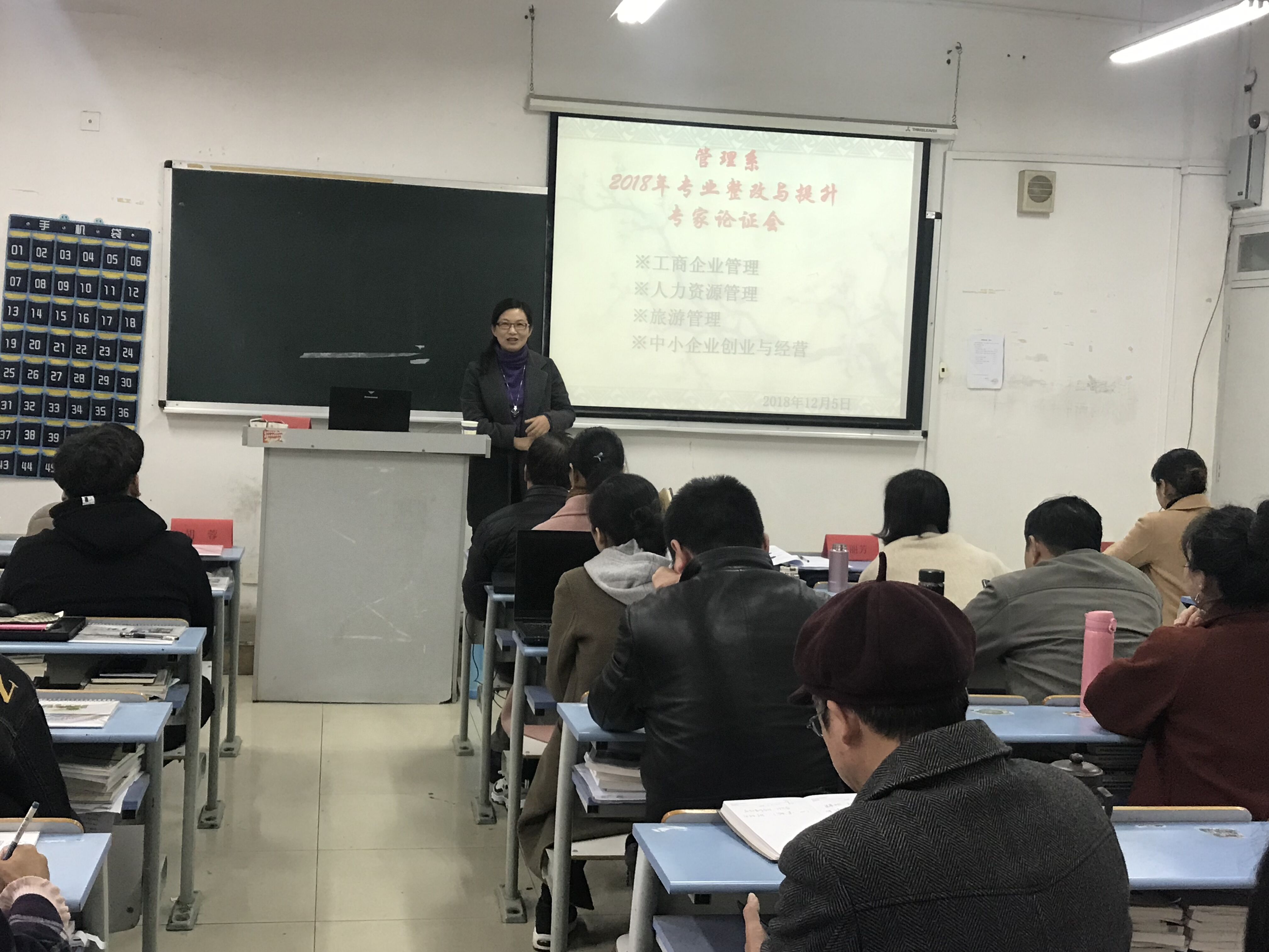 12月5日下午,管理系在1305教室召开“2018年专业整改与提升”专家论证会。论证会上,许迈进副院长和杭州鸿信企业管理咨询有限公司王丽芳总经理、杭州西溪湿地洪园胡蓉经理组成专家组,管理系全体教师参加了论证会,论证会由管理系主任汪亚明教授主持。