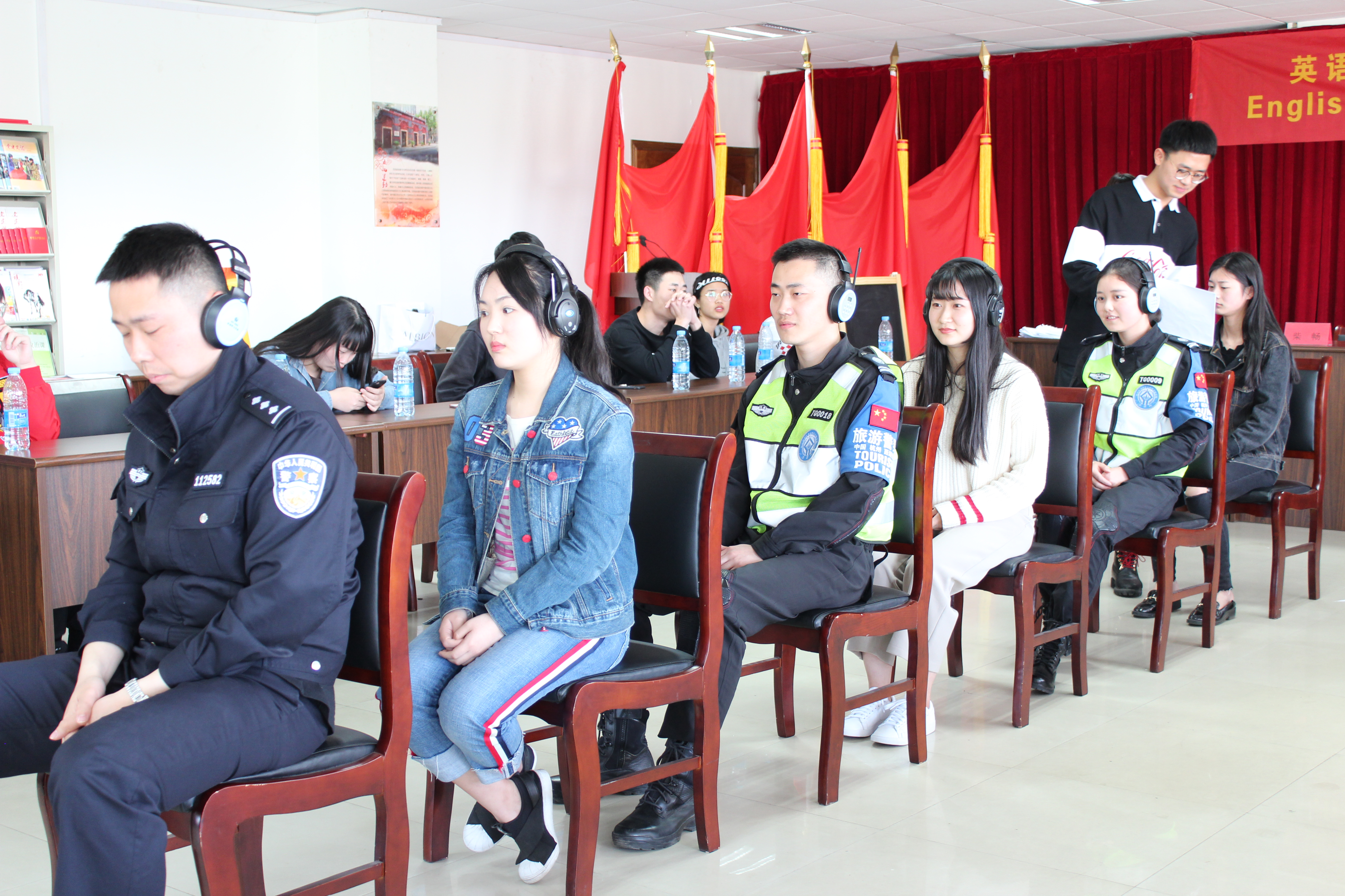 系主任杨成青教授和景区分局政治处副主任段良玉分别致辞。商务英语专业的学生和旅游警察都很积极地投入到三个环节的PK中,现场气氛热烈,选手们在英语语音、英语口语表达以及小组合作的默契度等方面都表现的非常精彩,他们用实力摘取了“地道英语人”、“最佳表现奖”、“最具潜力奖”和“最默契组合”等多个奖项。期间,外教Amu根据选手们在各环节的表现提出建议,并分享了她的学习经验。