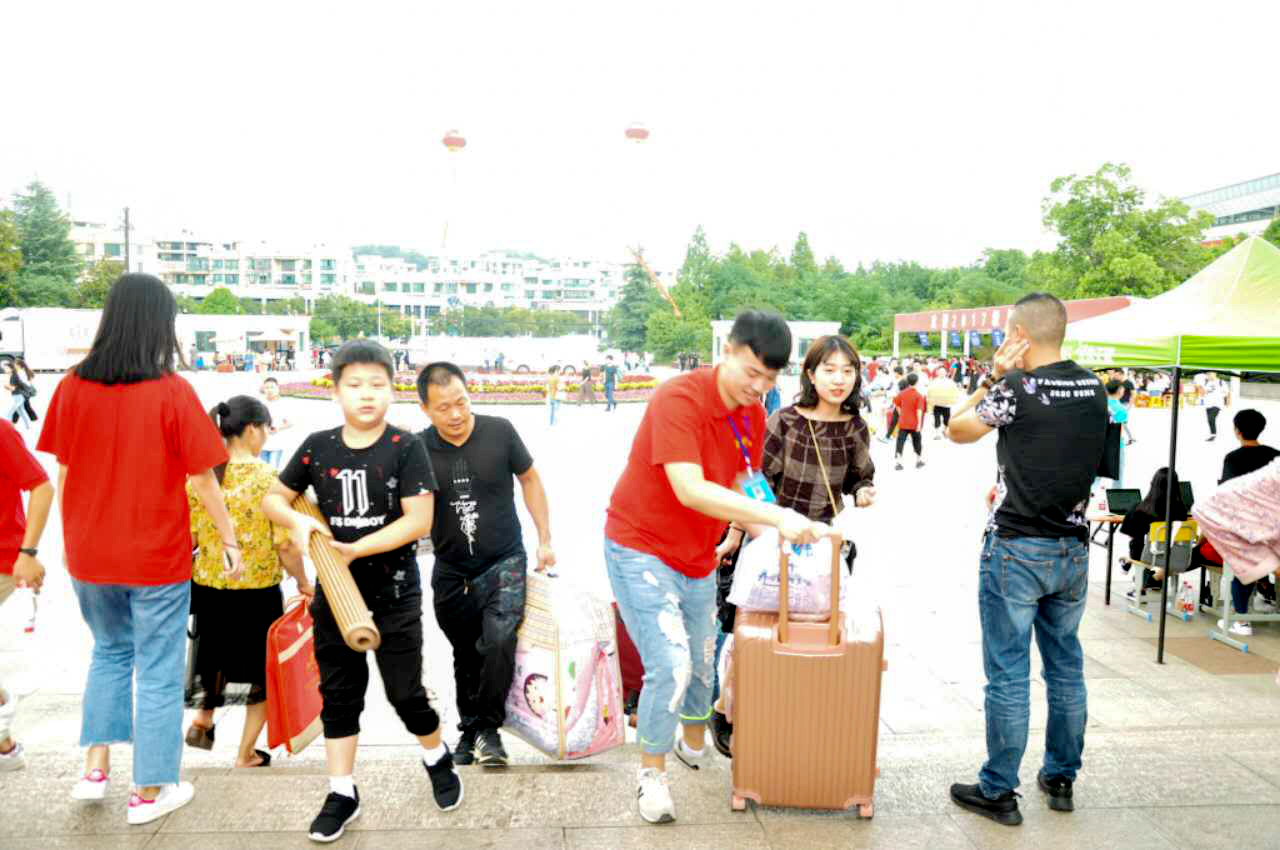 每一位新生都承载着一个家庭的期望,“送新”人群中,不乏举家前来者