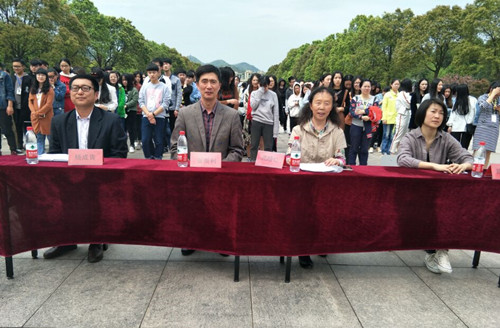 2017年4月5日下午13点30分,应用语言系第二届跨境电商语言文化节在图书馆前如期举行。出席本次开幕式的领导有学院督导室主任高晓红教授、学院校企合作处及科研处处长张崇利副教授、系主任杨成青教授、系党总支副书记郑雪春老师以及语言系的所有老师和学生。