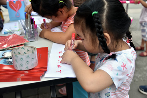 与社区内儿童通过填图反邪教色卡活动向家长宣传反邪教知识