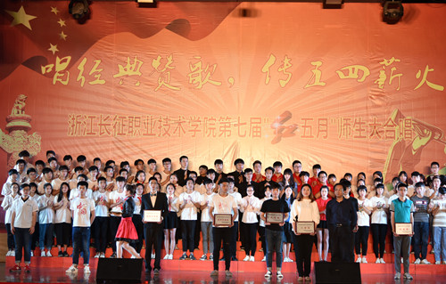 红歌唱响延安精神,党旗飞扬百年辉煌。2016年5月4日下午,我院在体育馆隆重举行了以“唱经典赞歌,传承五四薪火”为主题的浙江长征职业技术学院第七届“红五月”师生大合唱。大合唱邀请了周边共建单位以及各兄弟院校的声乐指导老师担任评委。学院执行院长、正院级巡视员洪永铿,学院副院长杜宝山,党委副书记、副院长王其军,党委委员、工会主席洪骏,党委副书记、纪委书记张乐弟等学院领导出席本次活动。现场1000多名师生一起观看了比赛。