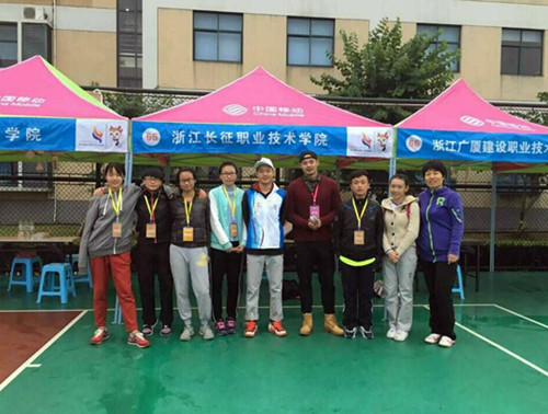 浙江长征职业技术学院代表团由杜宝山副院长任团长。在体育教研室曹桂霞、王海霞两位教练员的严格训练与认真指导下,从我院田径健儿中选拔出6位优秀运动员参加此次比赛。比赛期间一直下着雨,但我院运动员不畏风雨,顽强拼搏,赛出了风格,赛出了水平。经过5天激烈的竞争,获得了骄人的成绩:陈莉倩同学获得女子跳高第二名,以1.52米的成绩打破了省大运会女子跳高赛会记录;沈盼同学获得女子100米栏第三名和三级跳远第五名; 陈琪同学获得女子400米第六名; 倪秀婷同学获得女子400米第四名和800米第八名,同时,陈莉倩、徐扬两位同学还被大会评为“优秀运动员”。