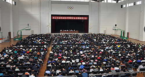 为了进一步贯彻落实省教育厅深化平安校园建设的文件精神,做好师生安全工作,提高同学们的安全防范意识,我院于10月22日下午,在体育馆召开2011级新生安全法制教育大会。杭州市公安局高国强警官、西湖区公安分局朱铁军警官、留下派出所沈敏慧警官、留下交警中队王建华警官分别应邀作了安全教育报告。