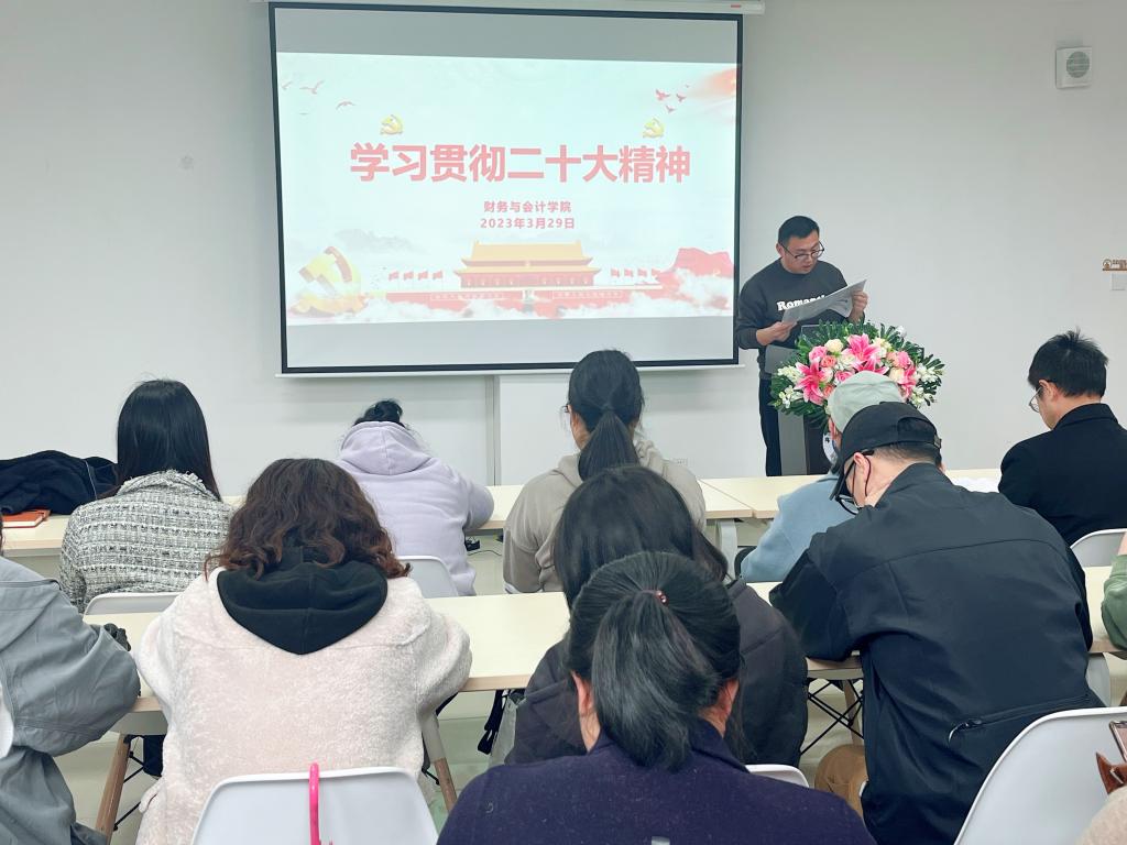 3月29日下午,财务与会计学院组织全体教职工在图书馆305室召开政治理论学习会,会议由财务与会计学院院长主持。