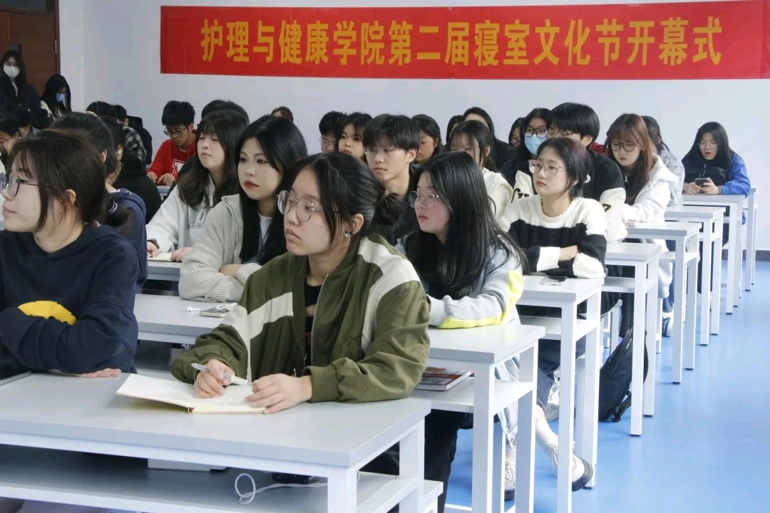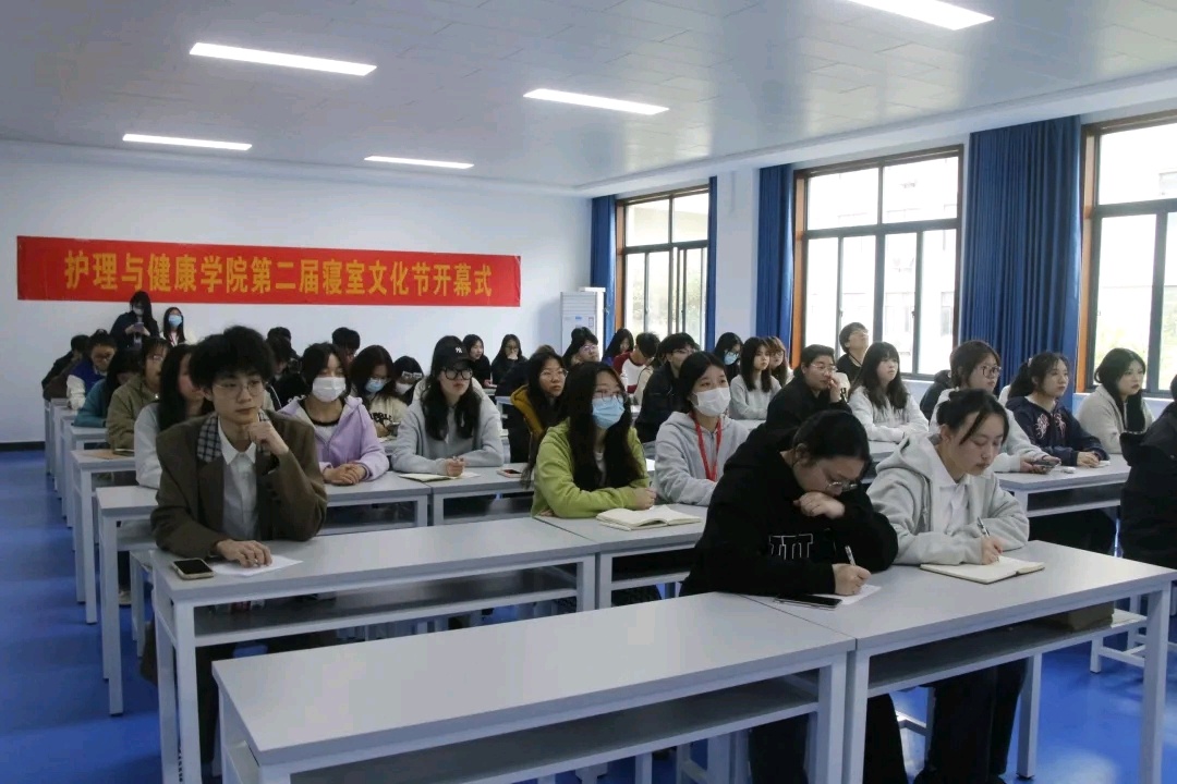 为进一步推动寝室文明建设,打造安全舒适的生活环境,提高学生内务整理技能和学生整体素质,营造文明向上、温馨和谐的寝室文化氛围,4月3日,护理与健康学院第二届“青春奋进共成长”寝室文化节在实训楼北207室开幕。护理与健康学院党总支部书记张泱,辅导员陈涧凯、章素圆、赵继婷、谢颖、辅莹及2021、2022级班干部、各班三星寝室代表等参加了开幕式。