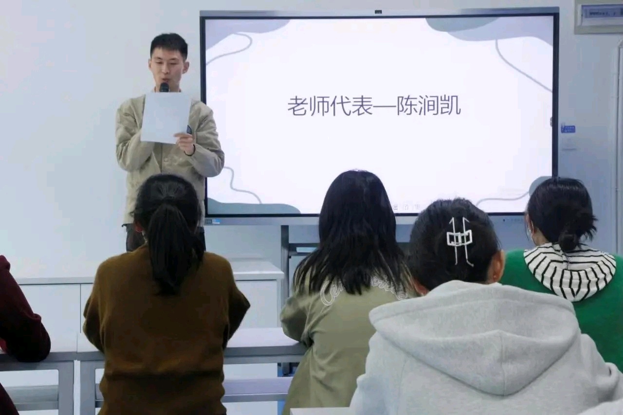陈涧凯作为辅导员代表发言。他表示,寝室永远是我们温馨的港湾。文明、整洁、温馨、健康的寝室氛围,承载着大家的青春活力和团结自律。希望大家能够群策群力,发挥寝室这个小集体的力量和智慧,积极创新,构建一个良好的集体寝室文化,建设一个温馨美好的‘家’”。