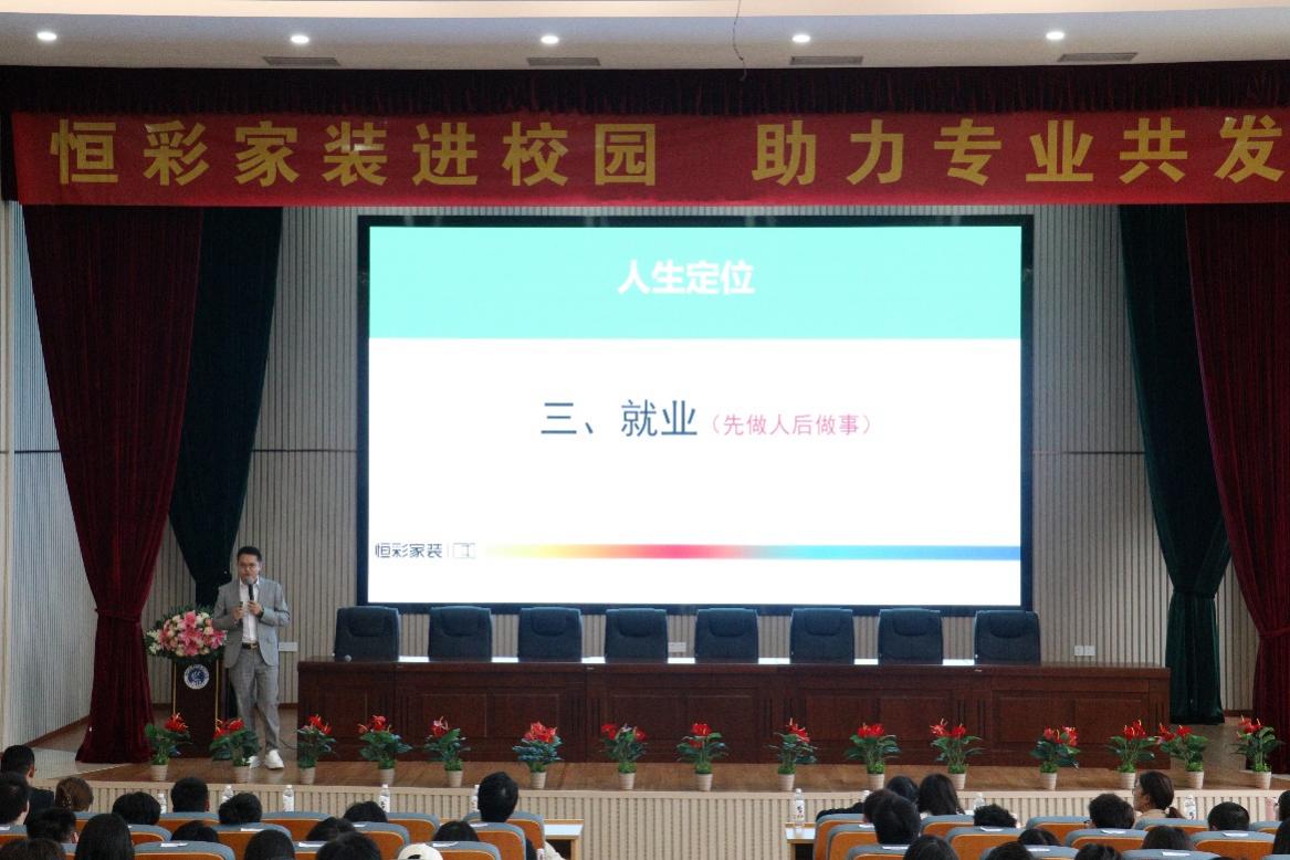 随后,恒彩家装优秀员工代表为同学们分享了他们的成长经历和心得体会,希望同学们不要局限于书本知识,根据建筑家装市场的大环境,把课堂专业知识与实践相结合。