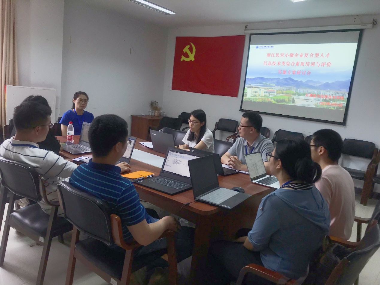 为推动教育评价改革,落实《浙江省深化新时代教育评价改革试点项目》内容,更好地对民营小微企业人才综合素质进行评价,6月6日下午,计算机与信息技术学院在北413室召开了综合素质培训与评价实施方案研讨会,浙江民营小微企业信息技术类复合型人才综合素质评价鉴定站相关成员参加了此次会议。