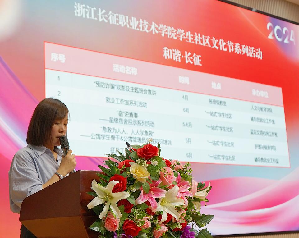 近日,学校“共建青春社区·共享美好家园”——学生社区文化节开幕式活动在第一报告厅举行。学校党委副书记吴有恩,学生处处长章剑飞,保卫处处长陈建云,团委副书记慕莎,学生处副处长郑鲜、副处长翁文亮,各二级学院党总支书记(副书记)、学工办主任(副主任)、全体辅导员及各班学生代表参加了本次活动。