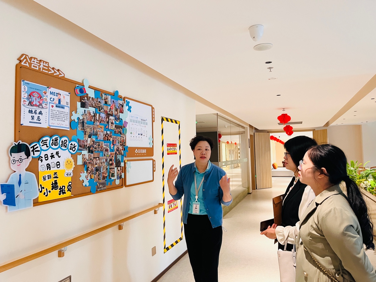 杭州安诺新程国际康养中心总经理白巍对应佳盈一行的到来表示热烈欢迎,并向大家介绍了康养中心的发展历程、服务理念、发展愿景等,陪同我校教师团队参观了安诺新程健康家、记忆家、医养家、门诊、药房等区域,使我校教师团队详细了解了适老化设计、认知症照护、营养膳食等内容。