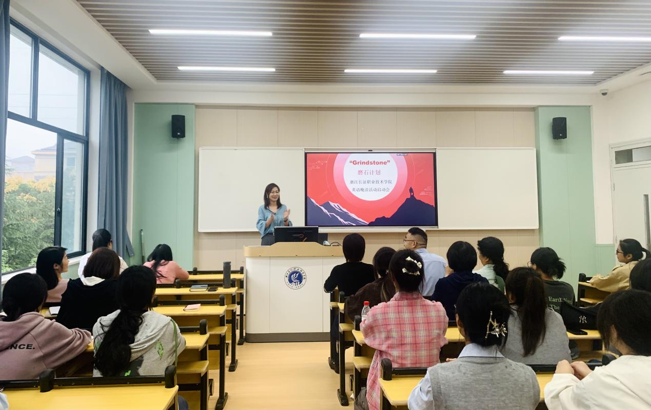 为进一步推进我校学风建设,提高晚自修课堂学习效率,也为更好促进我校英语教学工作,全面提升学生的语言素养和实践能力,由我校人文与教育学院公共外语教研室负责“Grindstone”磨石计划--英语晚读活动正式启动,并于10月16日在第一教学楼1317室召开启动仪式。学校副校长冯新红、护理与健康学院院长祖淑梅、党总支书记张泱、人文教育学院党总支书记郑雪春、常务副院长葛玲妹、24学前教育(师范)专业和24护理专业辅导员和学生代表参与了此次启动仪式。启动会由人文与教育学院教师王秋主持。