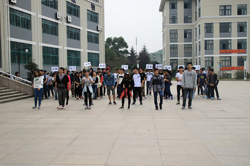 2014年10月17日中午,由学院团委主办的“我为核心价值观代言”快闪活动在学院图书馆前的广场上闪现。充满了热情活力舞动的身影,吸引了来往间同学们的关注,活动现场气氛热烈。
