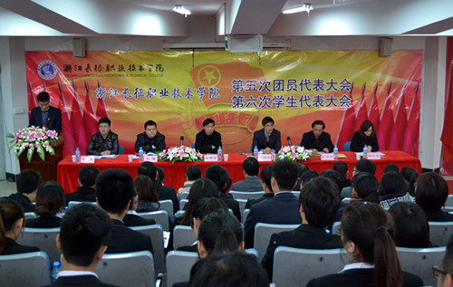 大会的召开得到了各兄弟院校的大力支持,在大会召开之前全省15所兄弟院校发来贺信祝贺本次大会圆满成功。会上,兄弟院校代表浙江建设职业技术学院团委书记蒋承杰致贺辞,并由工作人员宣读了贺信代表单位浙江金融职业技术学院发来的贺信。