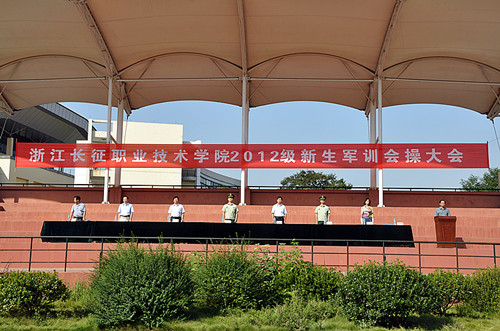 丹桂飘香是金秋,学子武装迎军旗,9月29日上午9点整,浙江长征职业技术学院2012级军训会操大会在田径场隆重召开。承训部队、学院领导、各系总支书记等共同出席会操大会,见证新生经过了艰苦磨练之后的蜕变。党委副书记、副院长王其军主持了此次大会。