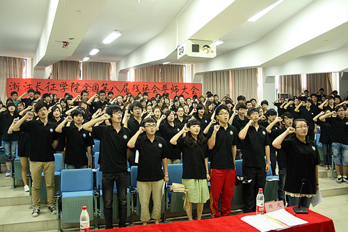 6月1日下午,在浙江长征职业技术学院1218教室隆重举行了第八届全国残疾运动会志愿者宣誓大会。学院党委副书记、学院第八届残运会志愿者服务领导小组组长洪骏和团委书记、学院第八届残运会志愿者服务领导小组办公室主任陶元出席本次大会。