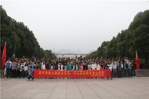 2013年11月2日,浙江长征职业技术学院会计系第九期业余党校组织了意义重大的“毋忘国耻”教育登山活动。以此对我系新一期党校学员进行爱国主义教育。