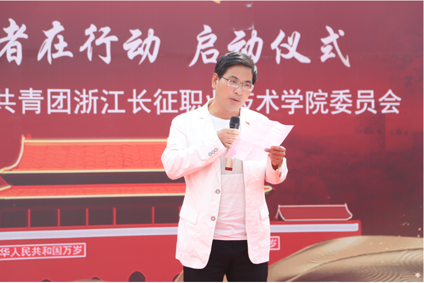 为贯彻习近平总书记致中国志愿服务联合会第二届会员代表大会贺信精神,积极履行职责,推进青年学生志愿者服务实践,浙江长征职业技术学院团委于2019年10月16日中午在图书馆前广场举行“向祖国献礼——志愿者在行动”主题活动启动仪式。学院领导、部分系党总支负责人,学生处、团委、公寓管理科、各系学工办负责人参加了本次启动仪式。